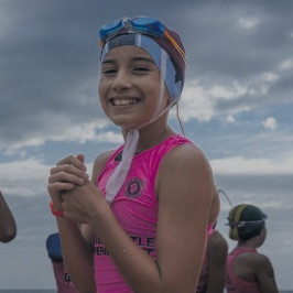 Our team is called the Cannonball Crew! Some of us are super strong swimmers, some of us just splash around, but together we make the best team. We cheer each other on, laugh a LOT, and try our hardest because this is about more than just swimming itβs about helping other kids.
