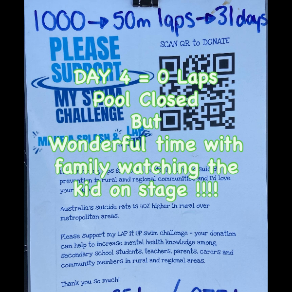 I'm taking part in the LAP it UP swim challenge to raise awareness and funds for Live4Life’s mental health education and youth suicide prevention model.